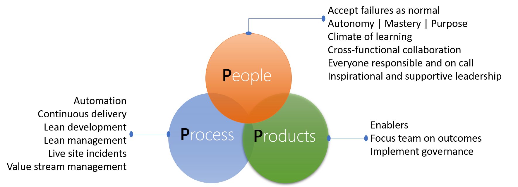 当我们谈论流程时,我们通常倾向于自动化,以实现高效、稳定和一致的价值流。 同样重要的是要包括以下目标:庆祝团队和组织的成功,从构思到弃用都注重质量,创建轻量级且响应迅速的变更管理流程,采用松耦合架构以实现扩展,并努力实现每天多次发布新功能。
