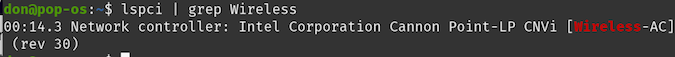 使用此命令可以了解网卡制造商是谁以及型号是什么,这对于找到解决方案非常重要。同样,您也可以使用略有不同的命令轻松找到无线适配器信息:lspci | grep Wireless。