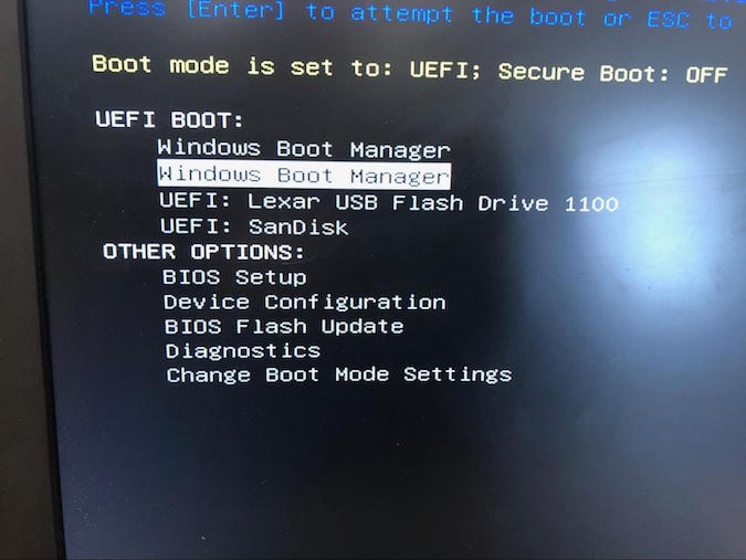 2. 我打开电脑,并在启动时敲击 F12 进入 BIOS,在那里我看到了一些选项。