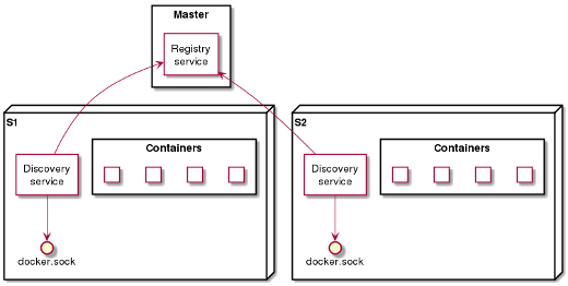 每个物理从服务器都有一个发现服务,监听 Docker 套接字。