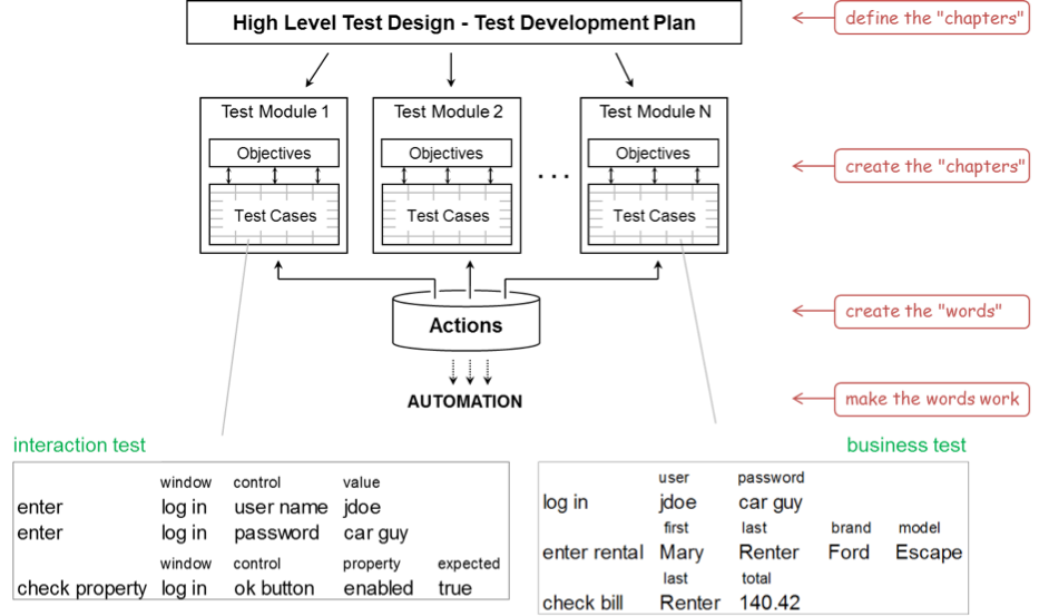 让我描述一些您可以采取的步骤来缓解这些问题。成功自动化的良好基础是测试设计。您如何设计测试对它们的自动化有很大的影响。换句话说,成功的测试自动化与其说是技术挑战,不如说是测试设计挑战。在我看来,一个好的测试设计中有两个主要层面结合在一起