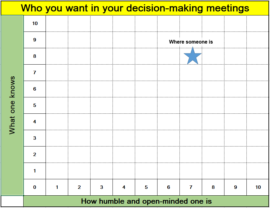 当您参加关于各种问题的会议时,您会把自己放在这个表格的哪个位置?其他人会同意您的看法吗?谁知道呢,房间后面那个安静、最缺乏经验但最独立思考的年轻人可能拥有其他人都没有考虑过的观点和知识。小组必须乐于听取那个人的意见。