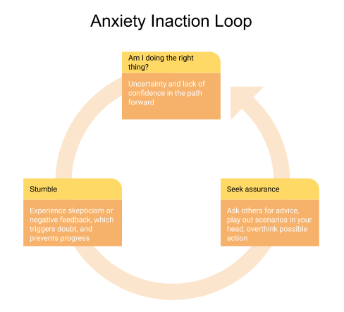 在一次我的教练问我关于我的工作的问题的会议中,我意识到我过度担心我是否走在正确的轨道上。我渴望从各种各样的利益相关者那里获得意见(这是一件合理的事情)导致意见过多,以至于妨碍了我前进。