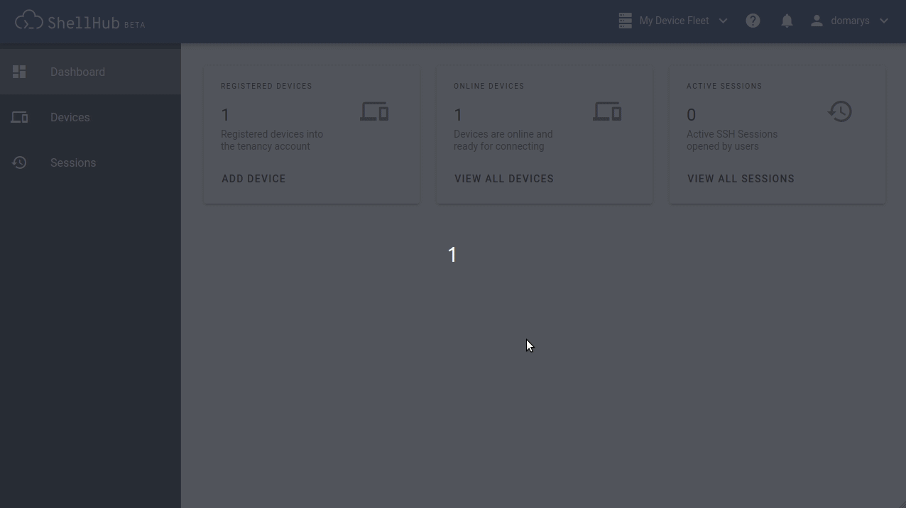ShellHub 的设计具有直观且简洁的界面,可以以最快的方式提供所有信息和功能。注册后,您将进入仪表板,准备注册您的第一个设备。
