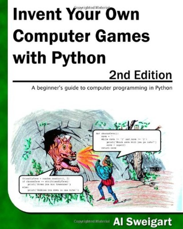 虽然我购买了 用 Python 编写你自己的电脑游戏 的平装版(印刷版万岁!),但您不必这样做。斯维加特的 Python 编程书籍可在 inventwithpython.com 上免费获得,并且除了 用 Python 自动化无聊的东西 之外,您还可以下载免费的 .pdf、.mobi 和 .epub 版本。他的网站上还提供了通过亚马逊购买印刷标题的链接,斯维加特将 用 Python 破解秘密密码 的所有收益捐赠给电子前沿基金会、知识共享和 Tor 项目。