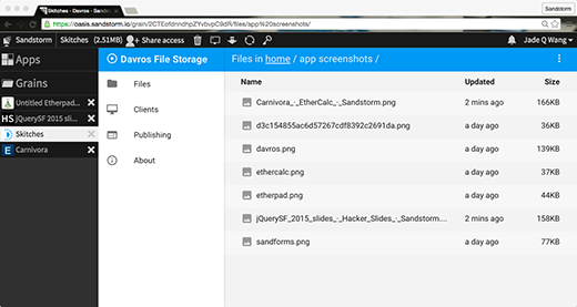 当我过去使用来自各种开发商托管的传统 SaaS 应用程序时,我必须分别登录到每项服务,将我的数据委托给他们,并希望他们永远不会 停止我喜欢的应用程序。如今,当我部署我在 Sandstorm 上使用的应用程序时,我可以将我的所有数据放在一个地方,并与我的协作者共享访问权限。最重要的是,我的数据存储在我控制的硬件上。