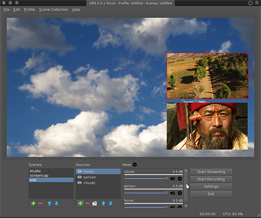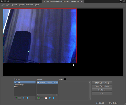 假设你已经安装了 OBS Studio,你可以像往常一样启动它。它与 Pulse Audio、ALSA 和 JACK 兼容,因此你可以随意管理音频。ALSA 和 Pulse 最简单,但 JACK 提供了更多选项。