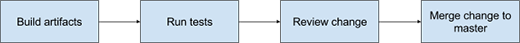 是否实施队友代码审查流程的决定取决于您。我真的建议这样做以提高代码质量,但这与 CI 系统是正交的。无论如何,重要的是要理解,构建和测试的触发是由向代码审查系统提交的新内容完成的。一旦所有测试都通过,代码就会合并到主分支。这样,您的主分支始终是绿色的,您的开发人员可以并行处理他们的修改。这种新的 CI 系统使您可以扩展自动化工作并保持流畅,因为不再存在阻塞问题。