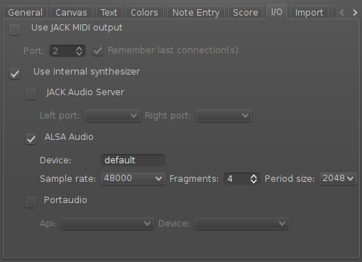 MuseScore 播放自然是基于 MIDI 的。默认播放机制是通过 PortAudio 或 ALSA 的通用 MIDI(具体取决于 MuseScore 的安装方式)。你可以在 编辑 | 首选项 | IO 选项卡中设置输出。