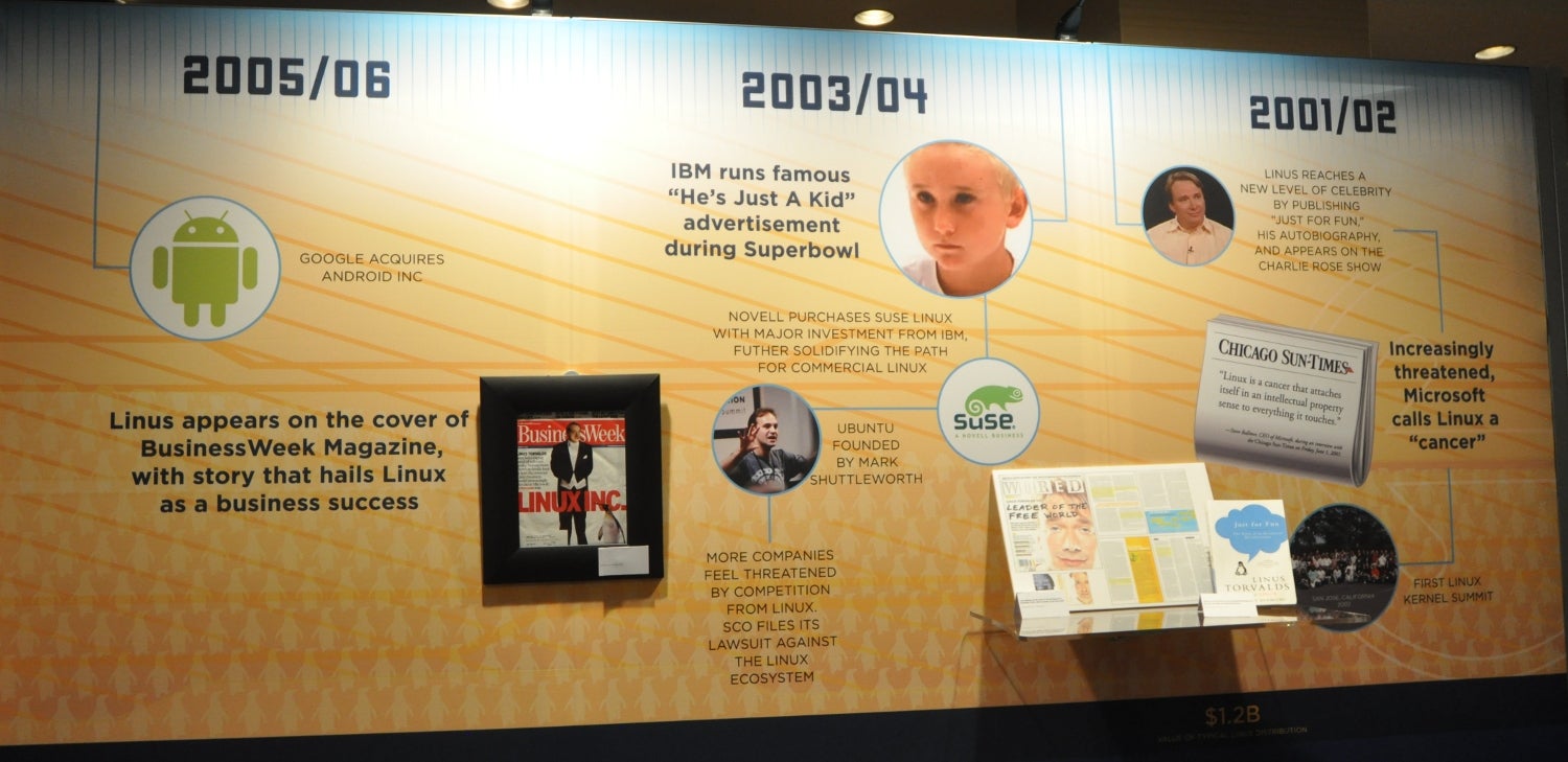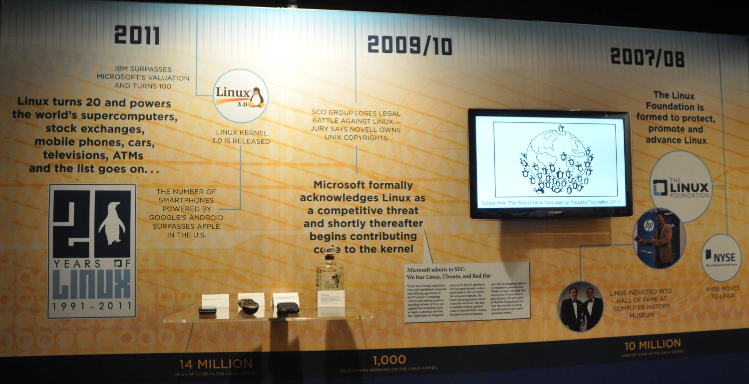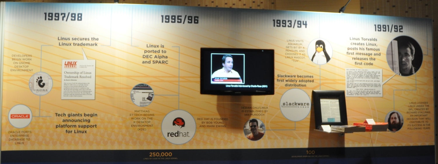 今年的 LinuxCon 大会今天在温哥华开幕,庆祝本月是 Linux 二十周年纪念。作为庆祝活动的一部分,他们汇集了一个画廊,展出来自社区捐赠的物品,代表了这 20 年来 Linux 的发展历程和成就。