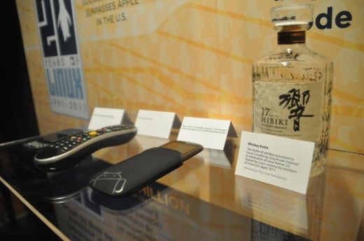基于 Linux 的设备; Greg Kroah--Hartman 向 Linus Torvalds 赠送了威士忌酒瓶,以庆祝 Linux 内核 3.0,并由社区成员在 2011 年日本 LinuxCon 上签名