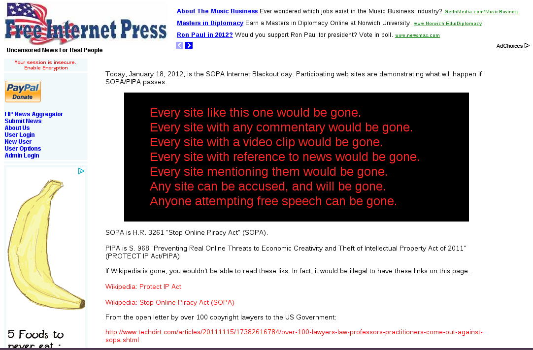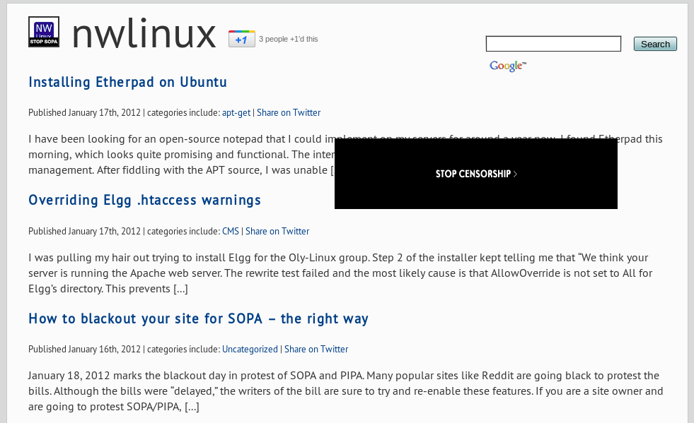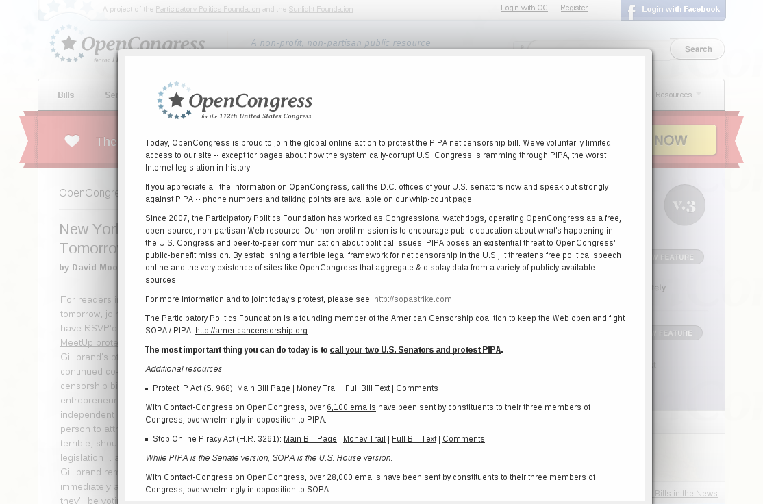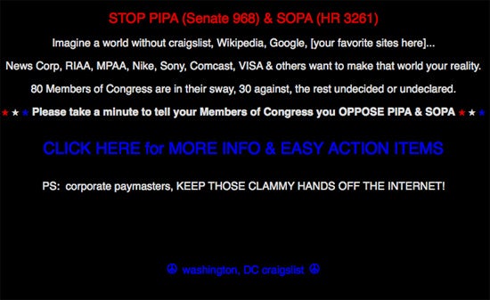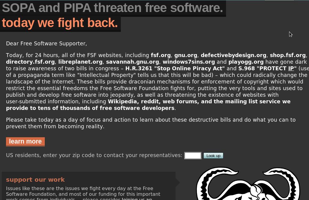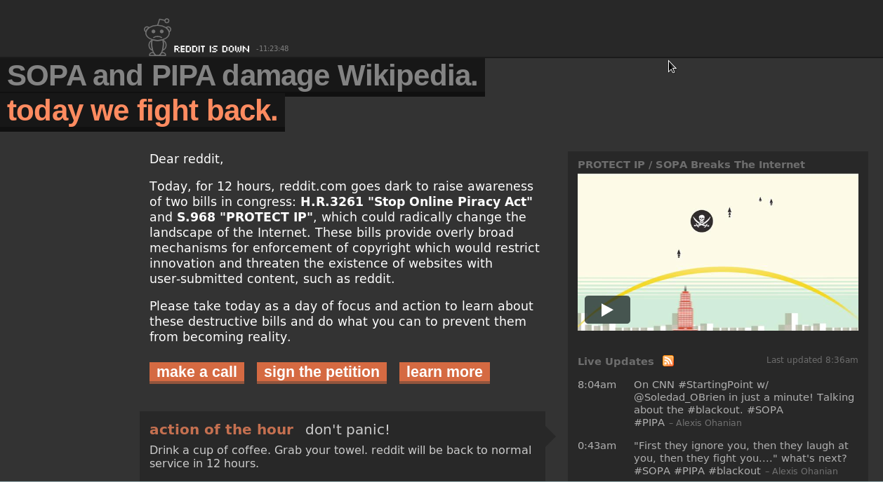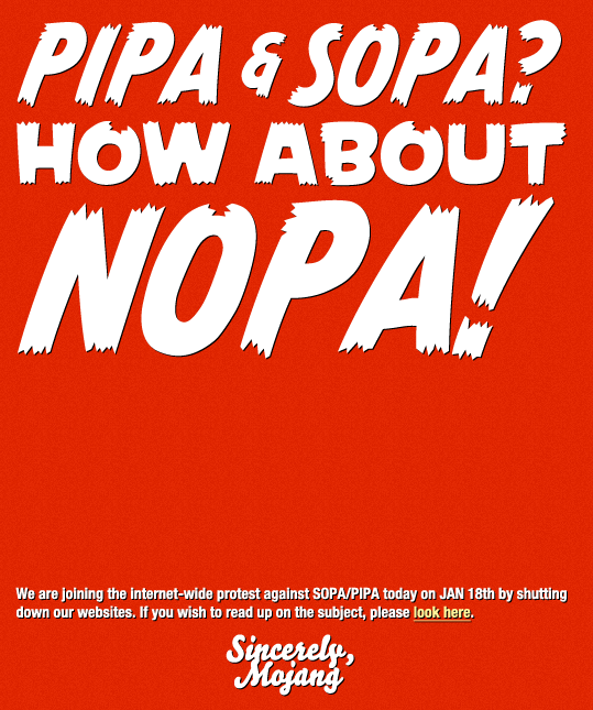 我将在今天持续更新这篇文章,添加更多加入 SOPA 遮 blackout 的网站图片。请在评论中留下您希望添加到画廊的任何网站,画廊将在遮 blackout 结束后保留在此处。另请注意,这些是“首屏”截图——如果您有完整页面截图,请随时发送,我也会尽力在今天结束前尽可能多地获取这些截图。