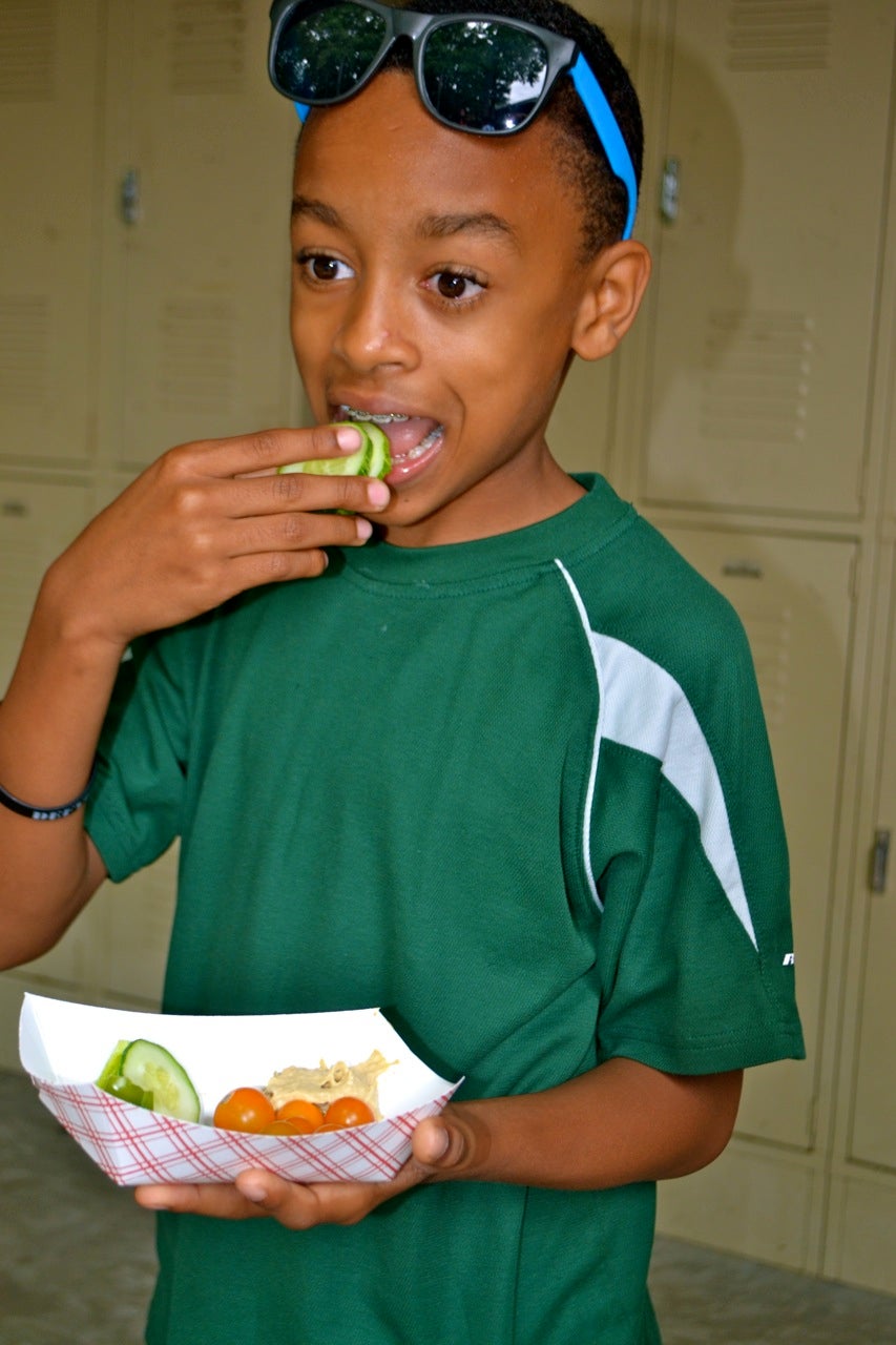 Farmer Foodshare 的机构合作伙伴的客户,包括 获得紧急食品援助的儿童和家庭 也参与其中。他们来到市场,帮助在捐赠站工作,会见农民并了解更多关于健康食物的信息——并且记住他们在食品系统中也占有一席之地。