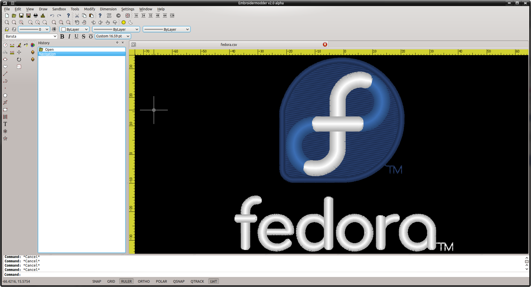 如果你的周边产品是用开源工具制作的,岂不是更好吗? 支持这个项目可以帮助实现这一点。 这是 Fedora 徽标,已准备好在 EmbroiderModder 中使用