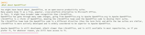 评论也很难解析。Jim Whitehurst 在撰写他的著作 The Open Organization 时,实际上让 LibreOffice 修补以处理评论。在与我们的模板斗争了几个章节后,我的编辑建议我们切换到 AsciiDoc,我的生活立刻变得轻松起来。