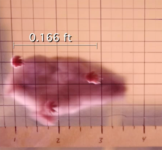 瞧!在拍摄它们并将录像慢动作回放后,我能够获得几个仓鼠步幅的测量值,并取平均值。