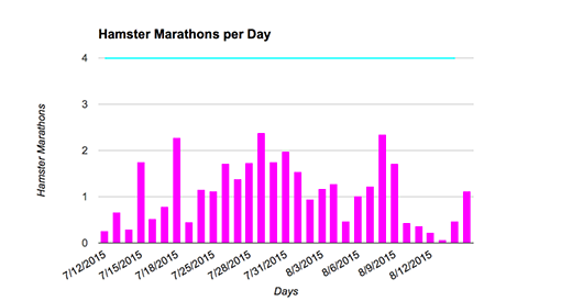 但实际上,我不应该对它们没有达到每天四次马拉松的指标感到如此失望。它们平均每天跑一到两次仓鼠马拉松,相当于每天跑两到五英里的人类距离。对于一种最大长度约为两英寸的生物来说,这些数字已经相当惊人了。