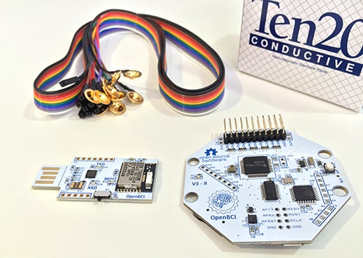 您一定会喜欢这些人。脑活动监测无论如何都是一项艰巨的任务。将高端脑电图 (EEG) 设备的大部分功能封装到一个(相对)经济实惠的开源硬件平台中,并提供研究质量的信号?这值得尊敬。OpenBCI 团队迎接了挑战,并且一次非常成功的 Kickstarter 众筹活动敲定了合作。他们的板子包含一个高性能 TI ADS1299 模拟前端、一个可编程微控制器、用于本地存储的存储卡和用于数据传输的蓝牙低功耗 (BLE)。