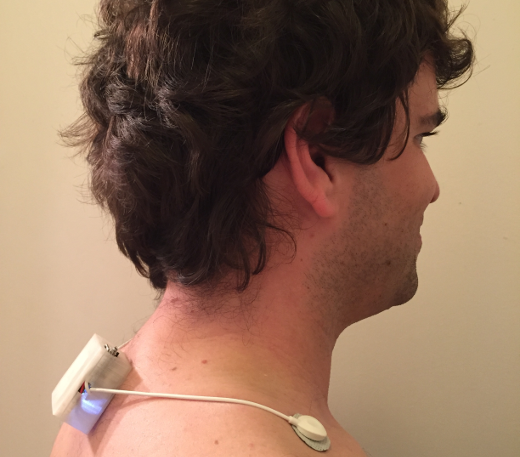 步骤 3: 根据您的喜好布置电极电缆;在我的情况下,我选择使它们的长度尽可能小,以使设备更实用,因此 IN- 和 IN+ 导线缠绕起来,考虑到我的脖子(参考电极将位于此处)和锁骨(测量电极将连接到此处)之间的距离。