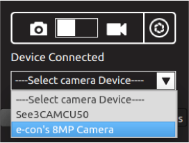 该应用程序将仅模拟连接到系统的 USB 设备。连接的设备列表(您最多可以连接六个摄像头)显示在“已连接设备”组合框中。您可以选择任何已连接的摄像头,并显示相应的预览。