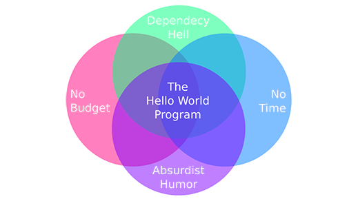 大约在这个时候,我说服我的兄弟不仅搬到洛杉矶,而且还尝试一下 Linux。作为一名 Web 开发人员,Linux 大大提高了他的工作效率。我们开始在项目上合作,并开发了 The Hello World Program,这是一个教育性和娱乐性的网络系列节目,教授计算机科学基础知识。在 Linux 上使用 FOSS 制作专业媒体并非易事。这张维恩图解说明了我们是如何制作出 The Hello World Program 的。