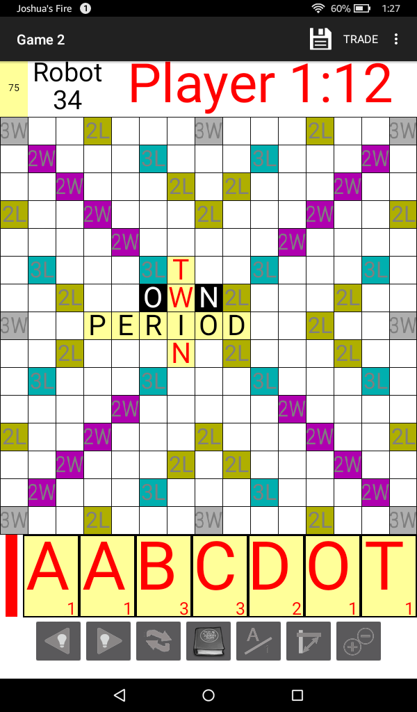 Crosswords 是一个 Scrabble 克隆游戏,它有一个不错的电脑玩家可以对抗,并且可以选择与在同一部手机上轮流或通过互联网或蓝牙连接远程的真人对战。游戏使用标准的 Scrabble 规则进行。玩家使用一组带有字母的方块来组成单词。根据使用的字母获得积分,有些字母价值更高。将字母放在某些位置可以从双字母、三字母、双词和三词奖励中获得更多积分。当玩家在棋盘上放置一个新单词时,它必须连接到棋盘上已有的单词。随着游戏的进行,棋盘呈现出类似填字游戏的外观。