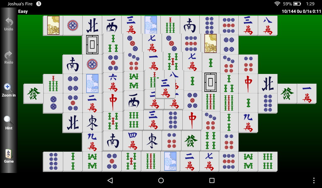 Mahjongg Builder 是使用一套麻将牌玩的流行单人纸牌游戏的版本。目标是通过找到匹配的牌组来移除屏幕上的所有牌。被覆盖的牌在上面的牌消失之前无法移除,并且左右两侧都有牌在同一层上的牌在其中一侧的牌被移除之前无法移除。Mahjongg Builder 带有 19 种不同的牌面布局,因此有很多变化。